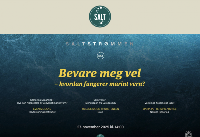 Nå kan du få nyheter og invitasjoner fra SALT også som nyhetsbrev. Meld deg på vårt nyhetsbrev her på nettsiden og få invitasjoner til SALTe arrangementer, informasjon om spennende prosjekter og ny kunnskap, rett i innboksen. Vårt aller første nyhetsbrev er ute nå. Her kan du blant annet melde deg på vårt neste webinar i serien SALTstrømmen, og lære mer om hvordan SALT arbeider med marint vern.